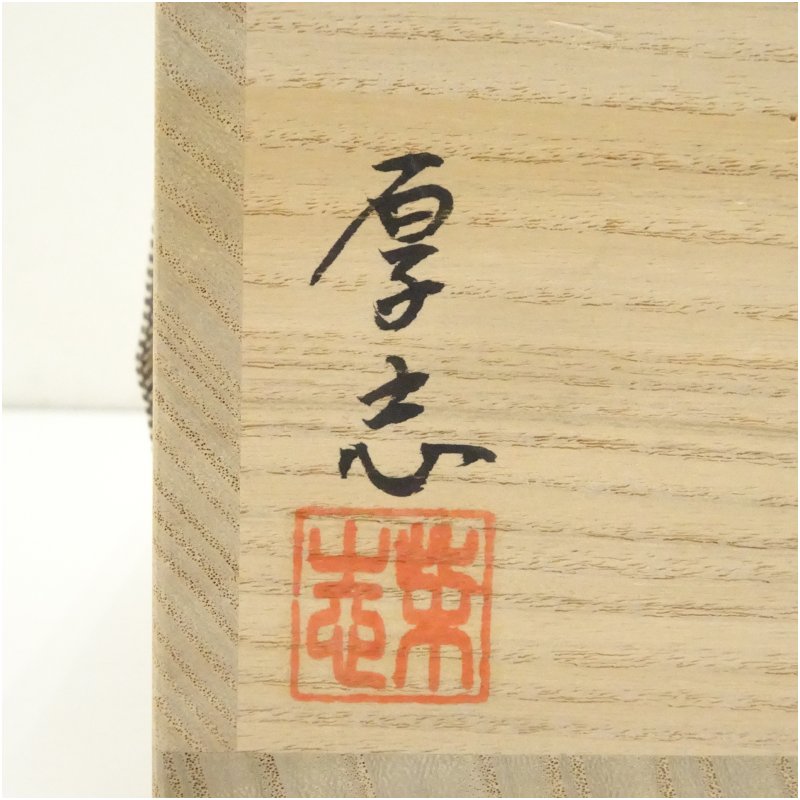 柴田厚志造 辰砂紅彩草文和の字茶碗(共箱)