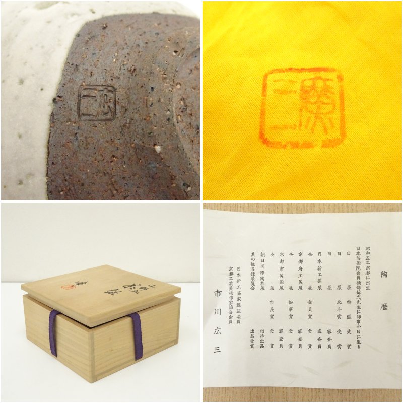 京焼 市川廣三造 山科土茶碗(共箱) [09-250826c-056a]