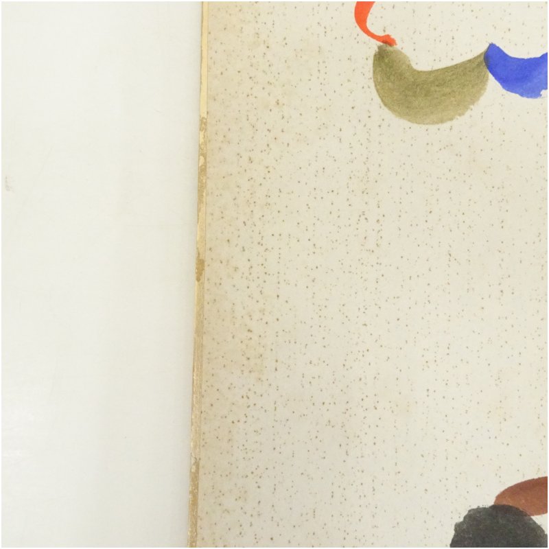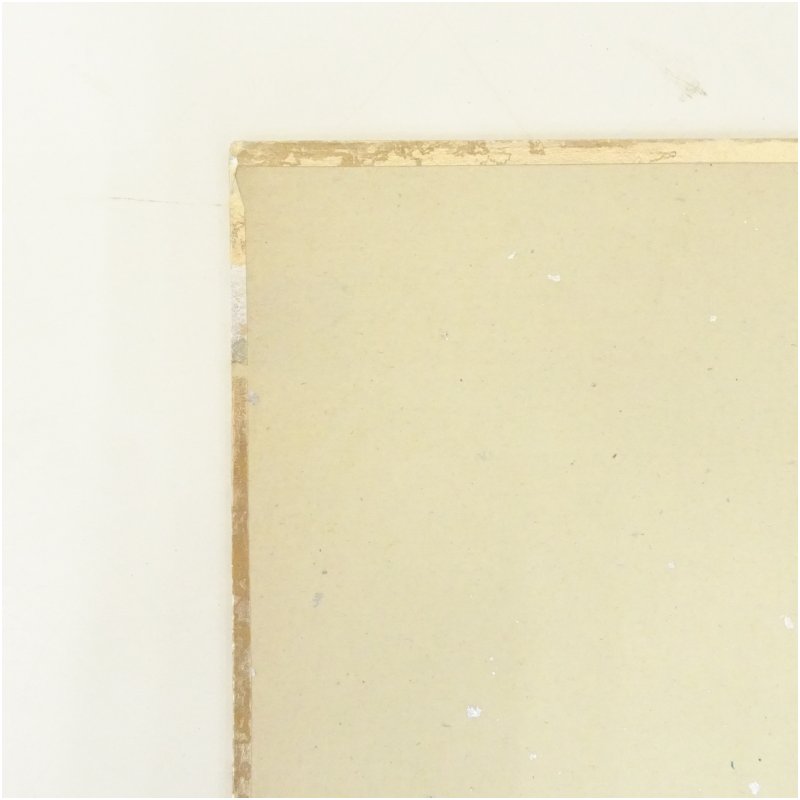全体に経年による細かなシミがあり、フチの金紙に変色があります。