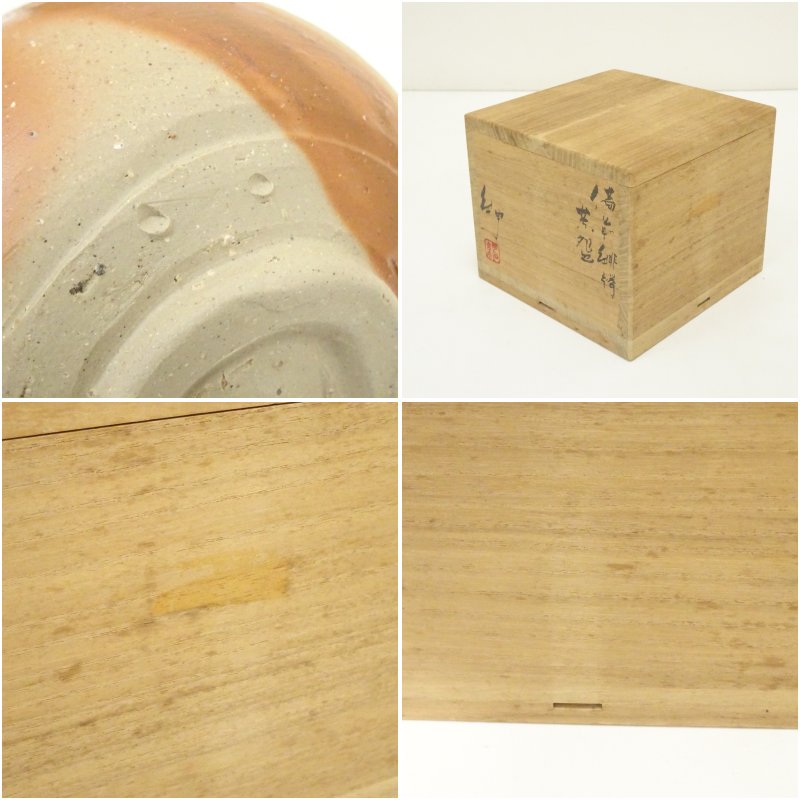 備前焼 伊勢崎紳造 火襷茶碗(共箱)