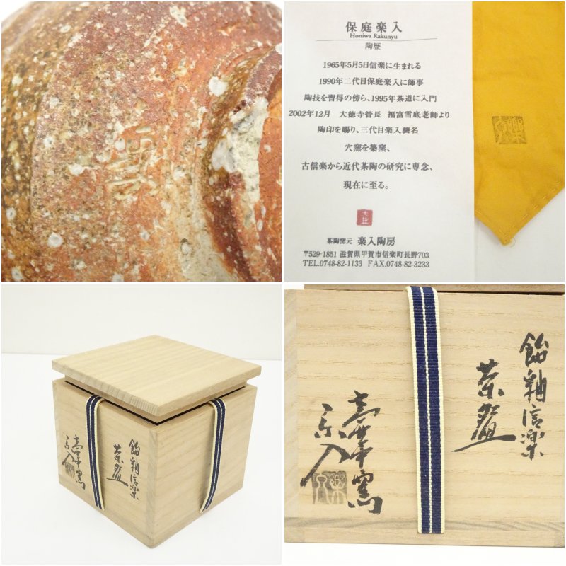 信楽焼 三代 保庭楽入造 飴釉信楽茶碗(共箱)