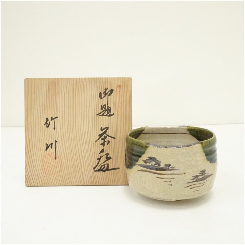 市川竹川造 御題織部茶碗(共箱) [09-250828c-019a]