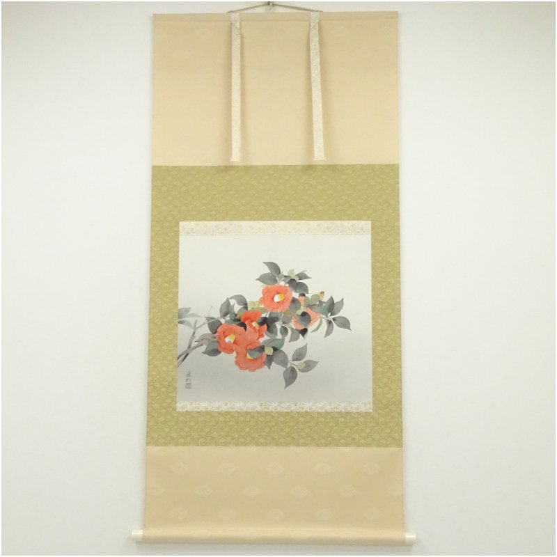 内田逸郎筆 椿 肉筆絹本掛軸(保護箱) [01-250828c-050a]