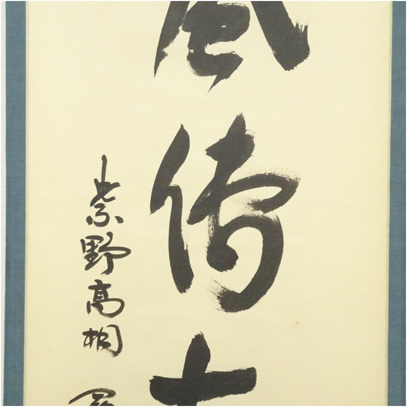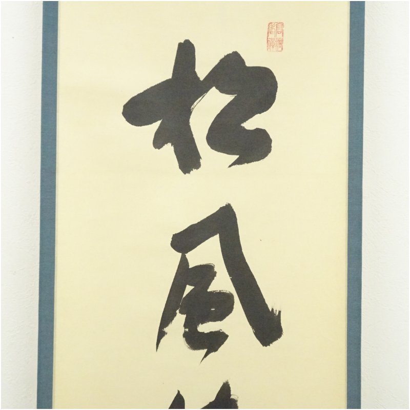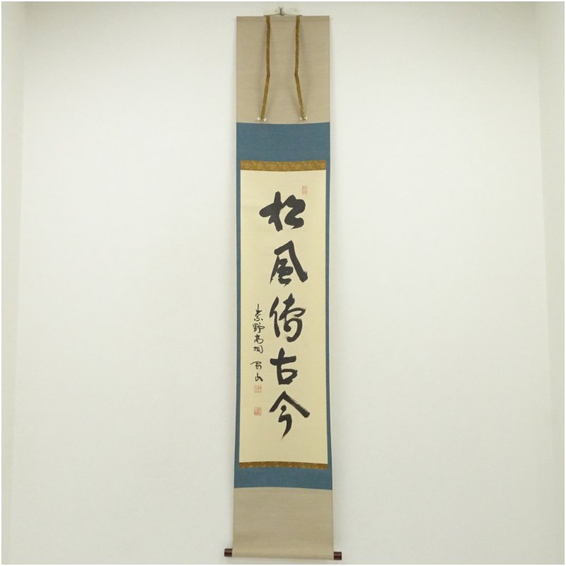 大徳寺 松長剛山筆 「松風伝古今」一行書 肉筆紙本掛軸(保護箱)