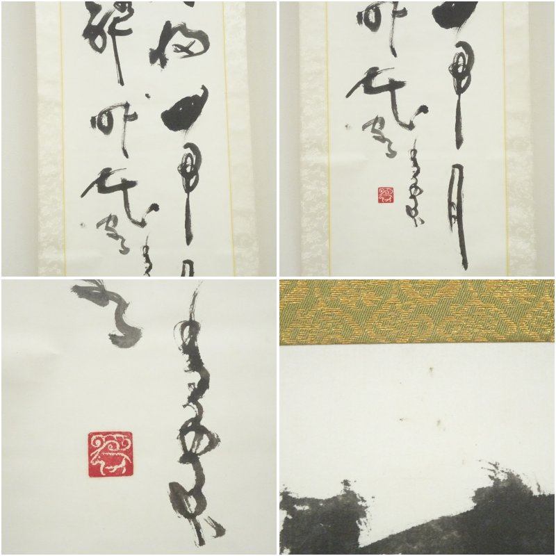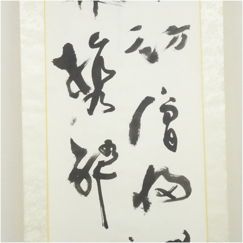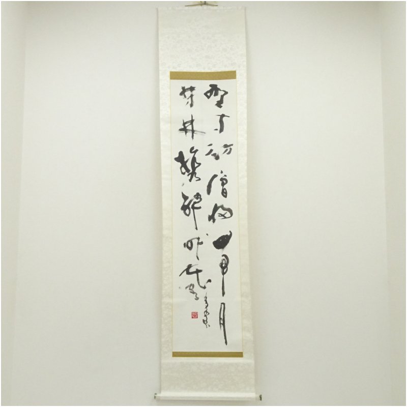 斎毛筆 「啼帯月」二行書 肉筆紙本掛軸(共箱) [01-250828c-060a]