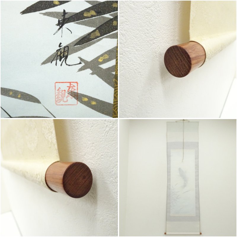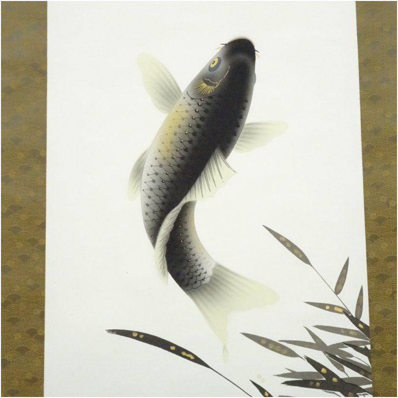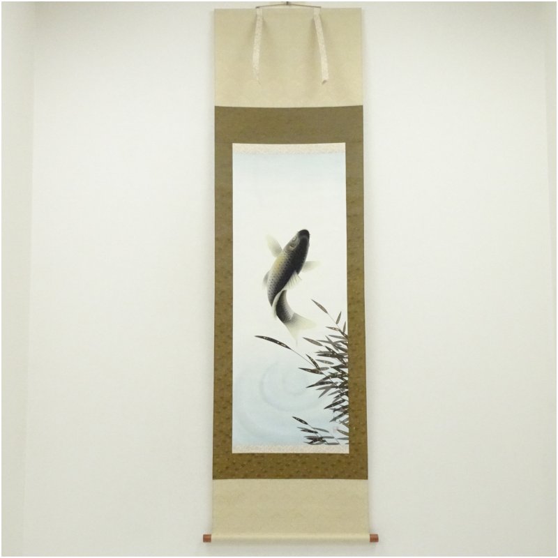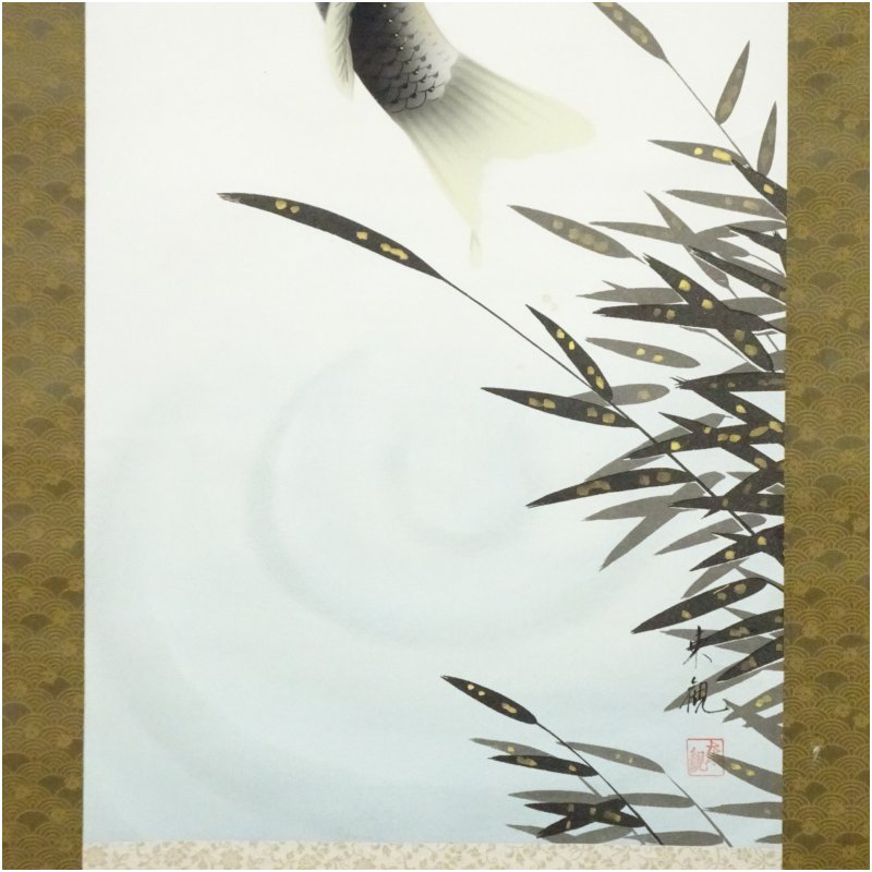 東観筆 跳鯉 肉筆絹本掛軸(共箱) [01-250829c-002a]