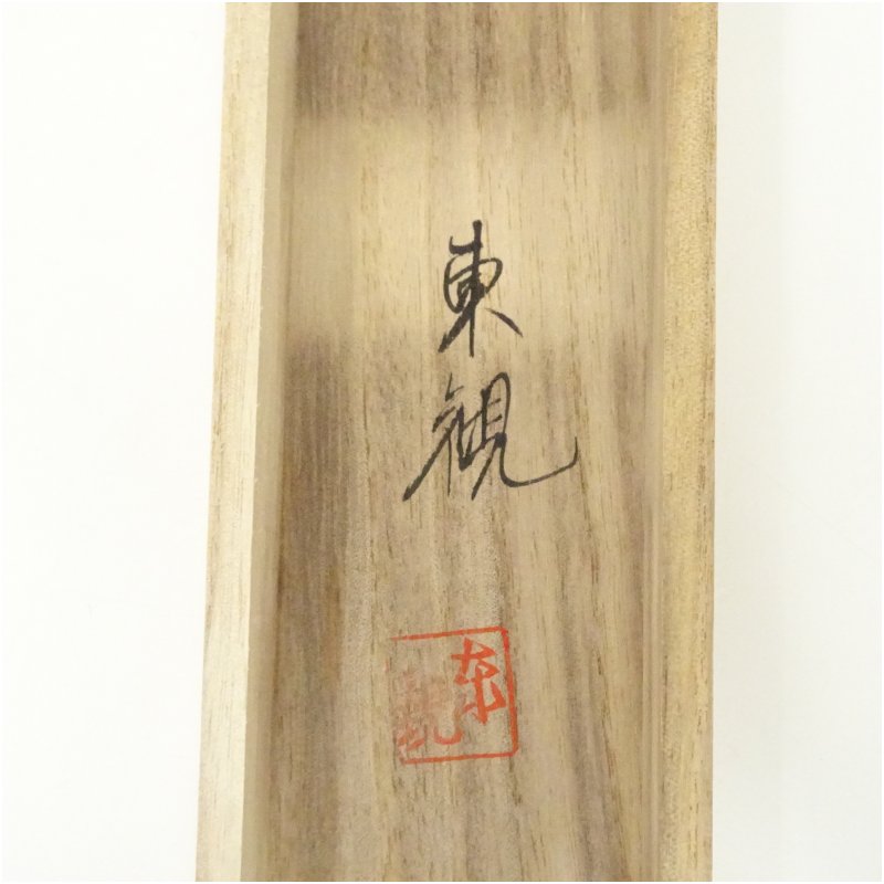 東観筆 跳鯉 肉筆絹本掛軸(共箱)