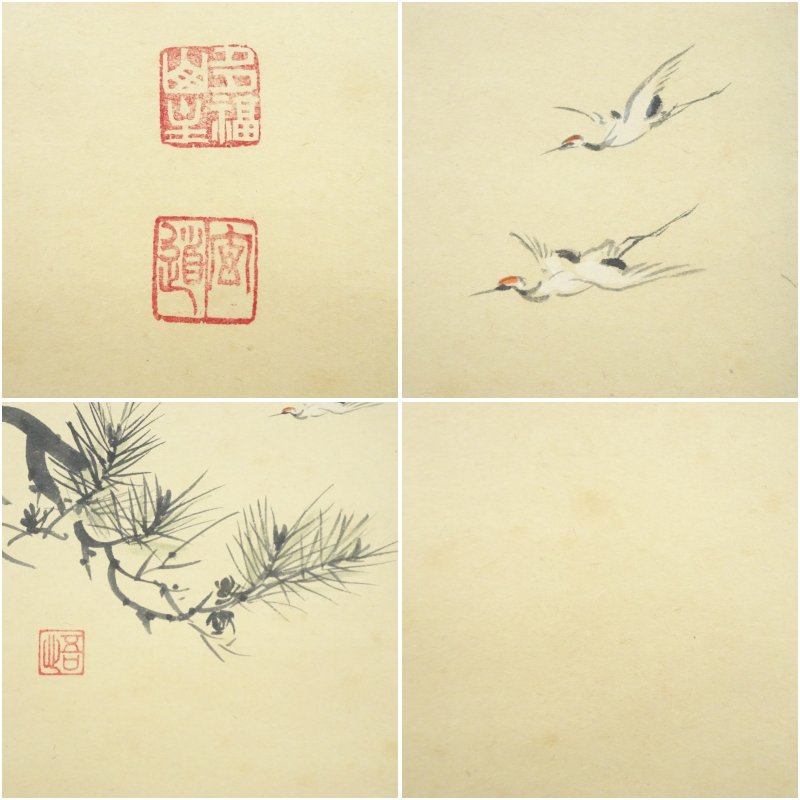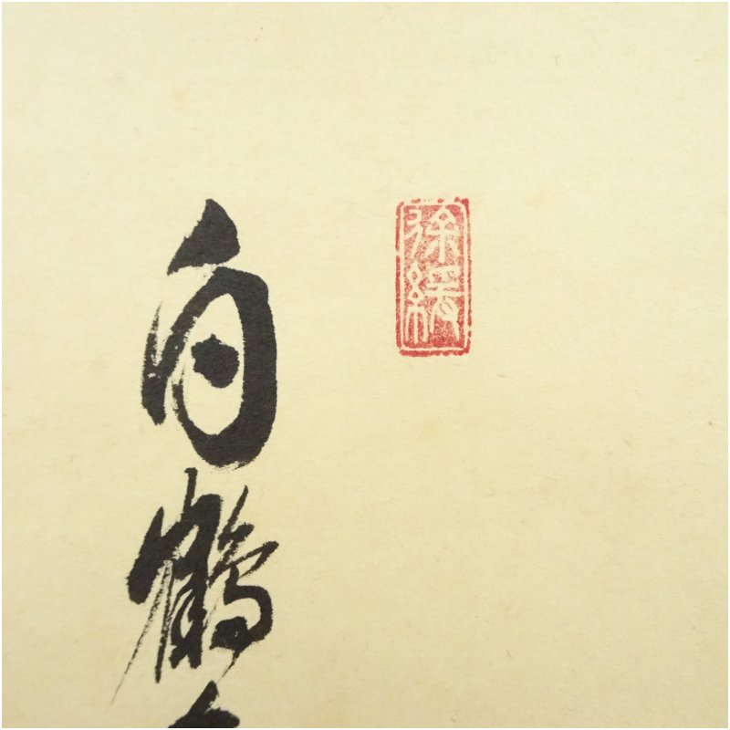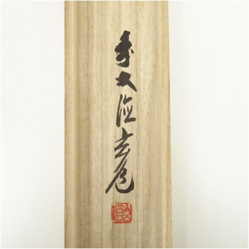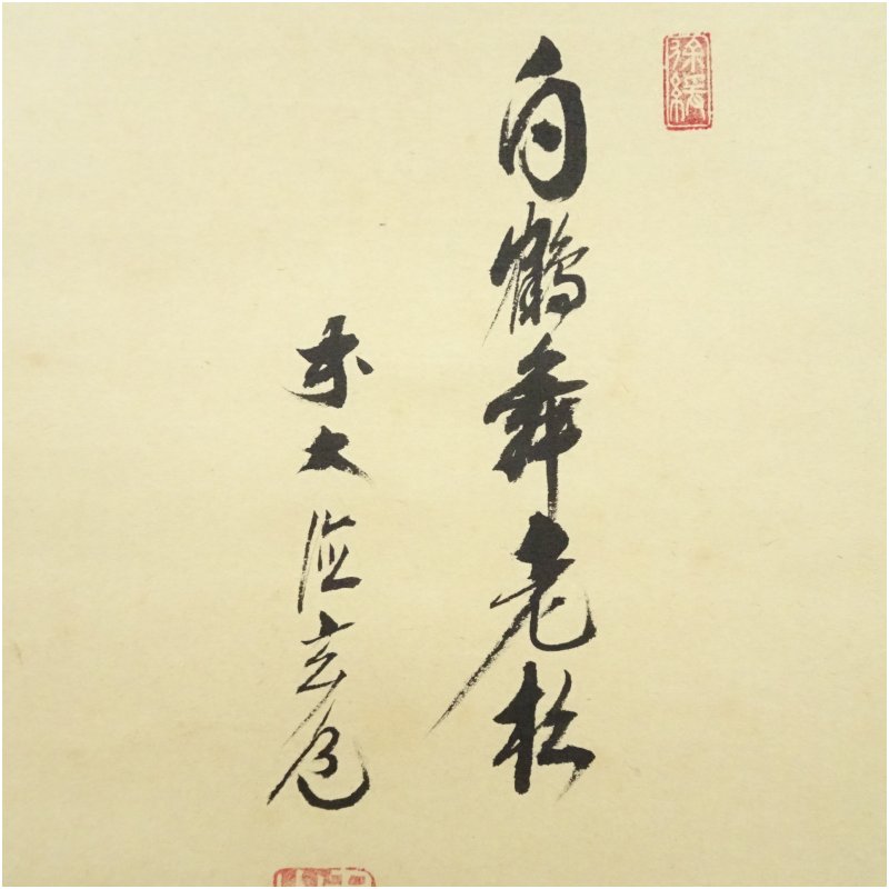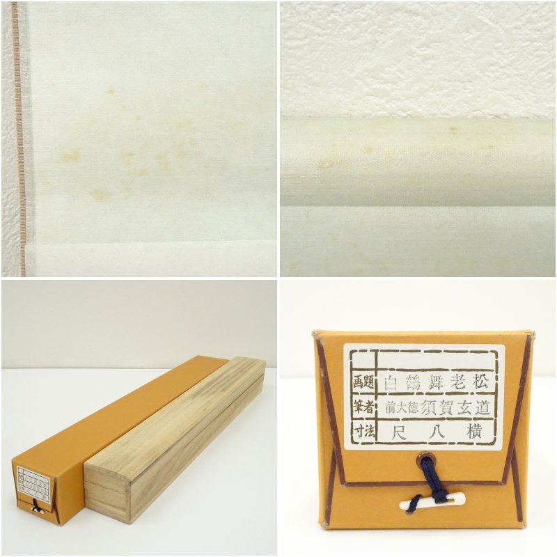 前大徳 須賀玄道筆 「白鶴舞老松」松画賛 横物 肉筆紙本掛軸(共箱)