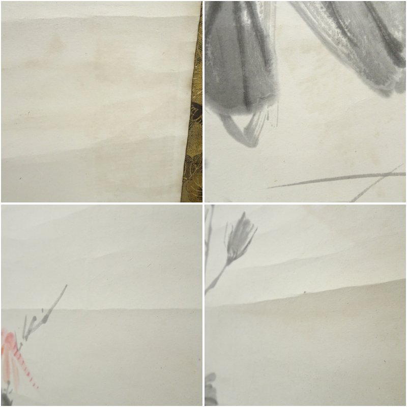 草雲筆 水墨 花鳥図 肉筆紙本掛軸(保護箱) [01-250901c-002b]