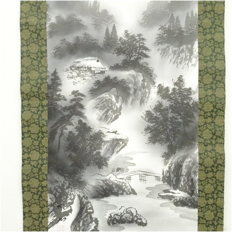 作家物 水墨山水 肉筆絹本掛軸(保護箱) [01-250901c-013a]
