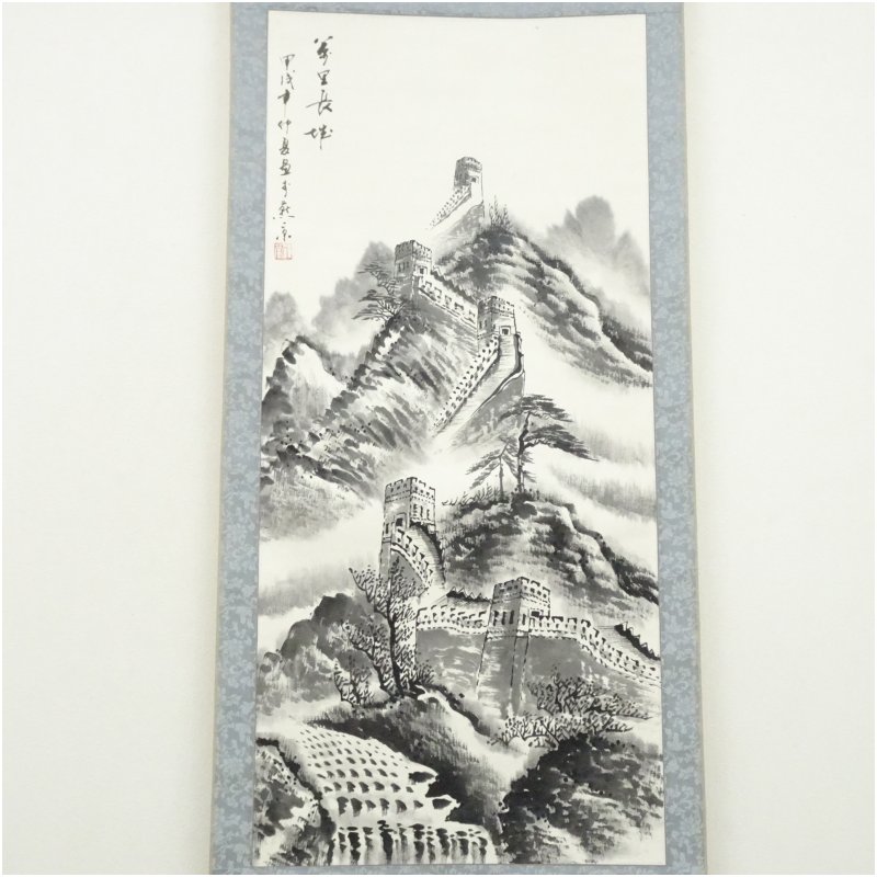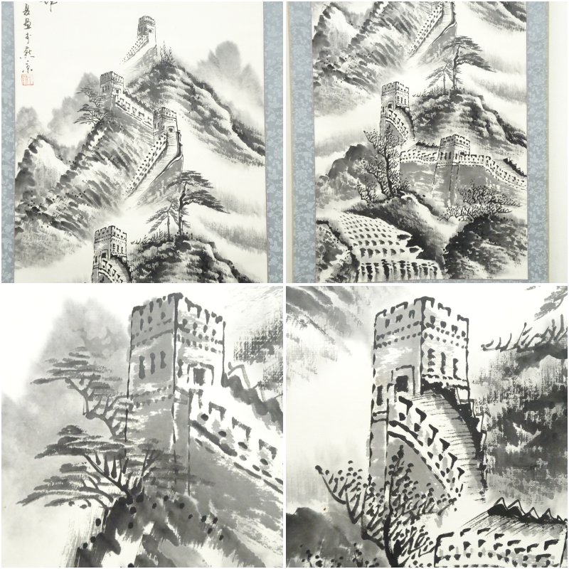 王蒙筆 万里の長城 水墨山水 肉筆紙本掛軸 [01-250901c-020a]