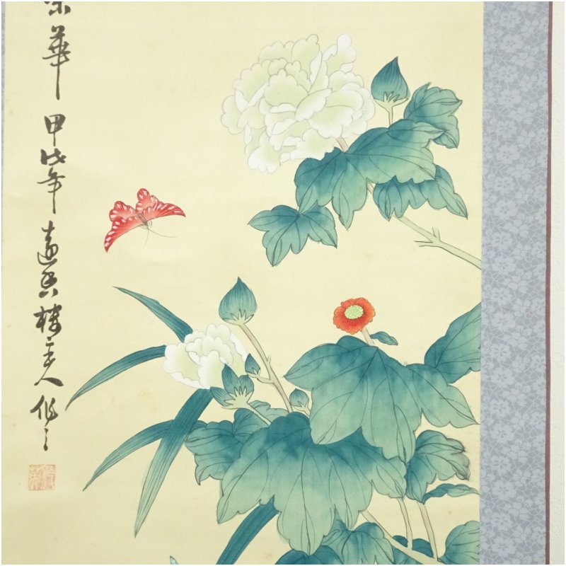 作家物 一路栄華 花蝶図 肉筆絹本掛軸 [01-250901c-025a]