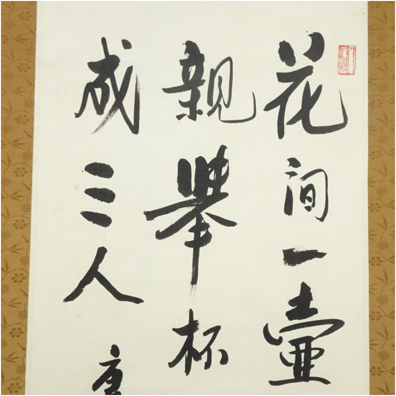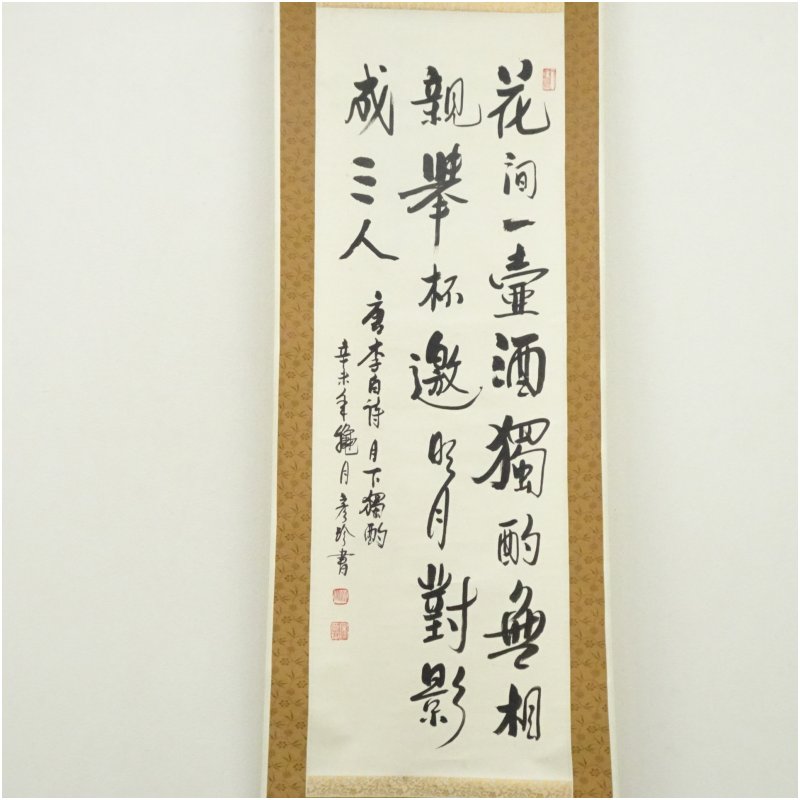 中国 宋彦珍筆 李白詩 月下独酌 肉筆紙本掛軸 [01-250901c-031a]