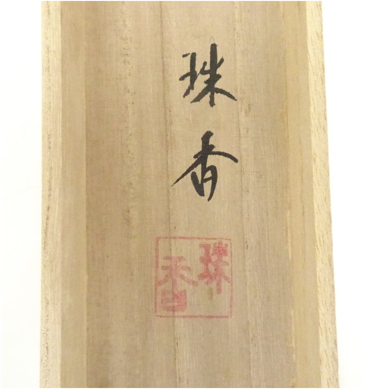 珠香筆 四季花 肉筆絹本掛軸(共箱)