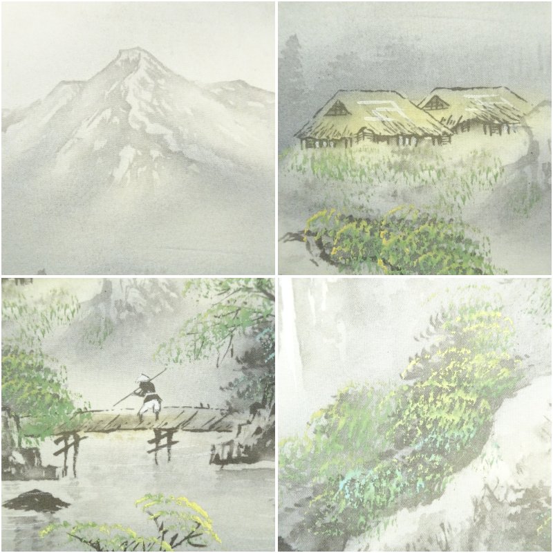 玉石筆 彩色山水 肉筆絹本掛軸 [01-250901c-039a]
