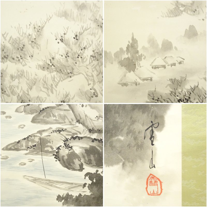 雪山筆 水墨山水 肉筆紙本掛軸(保護箱) [01-250901c-049b]