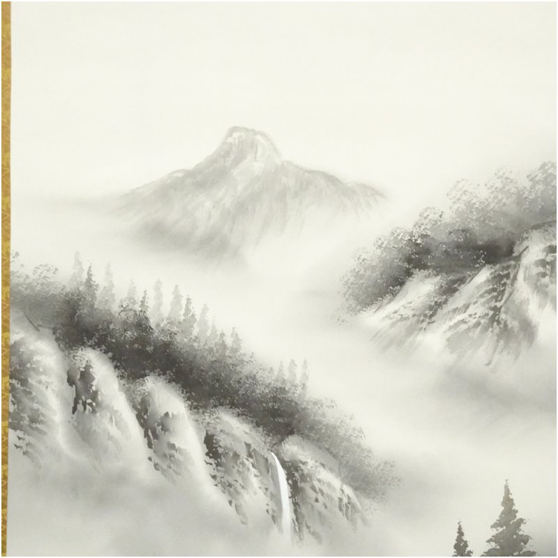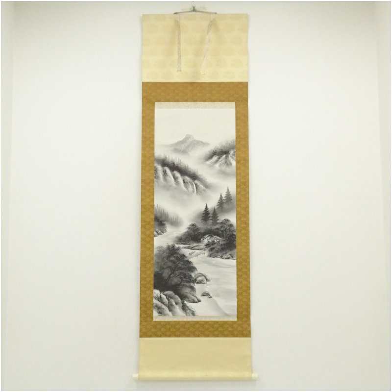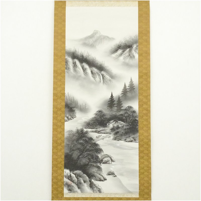 杉本翠峰筆 水墨山水 肉筆絹本掛軸(共箱) [01-250901c-050a]