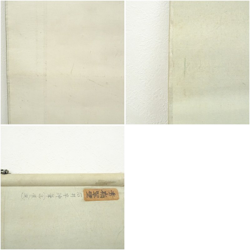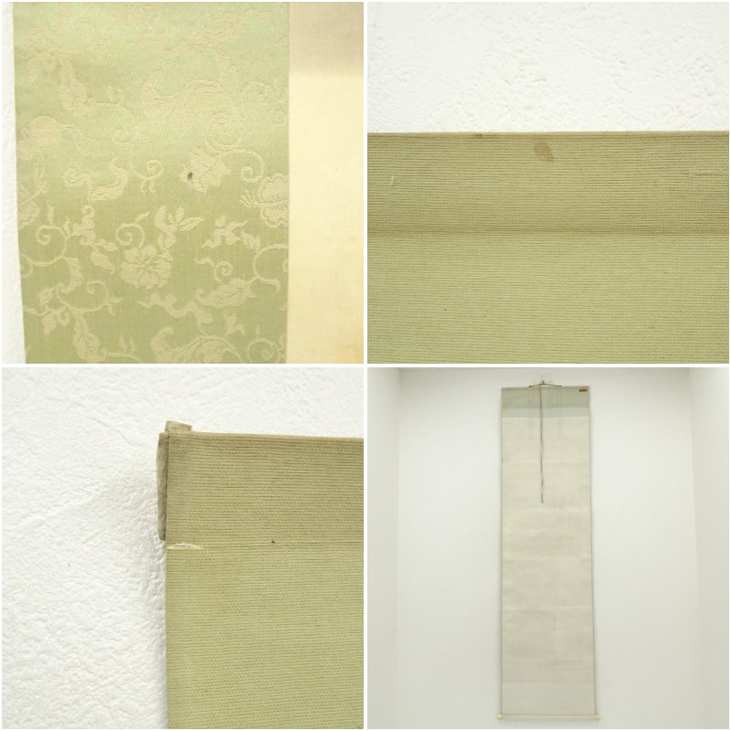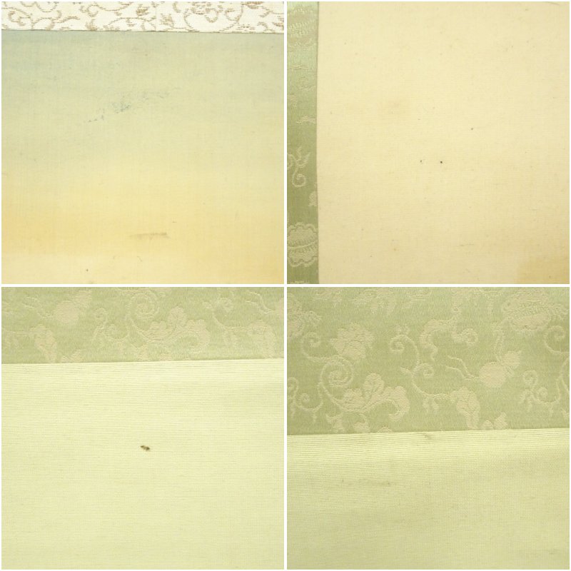 本紙と表具両面に、全体的に経年による汚れやシミがあります。