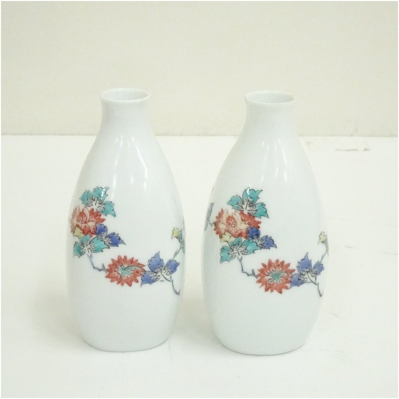有田焼 十三代 酒井田柿右衛門造 染錦牡丹文酒器揃(共箱)