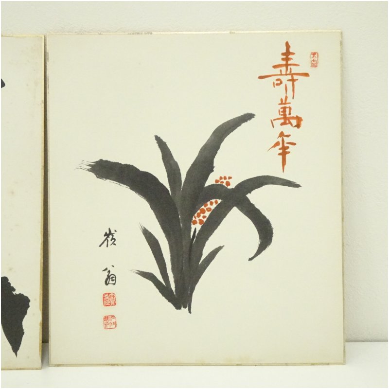 大覚寺 味岡良戒筆 「寿萬華」など 肉筆色紙2枚 [13-250902c-048a]