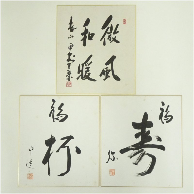 十道筆 「福杯」など 肉筆色紙3枚 [13-250902c-083a]