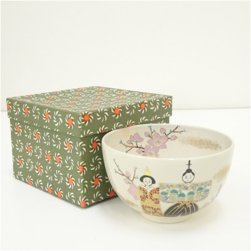 京焼 上山善峰造 色絵立雛茶碗(箱付) [13-250903c-009a]