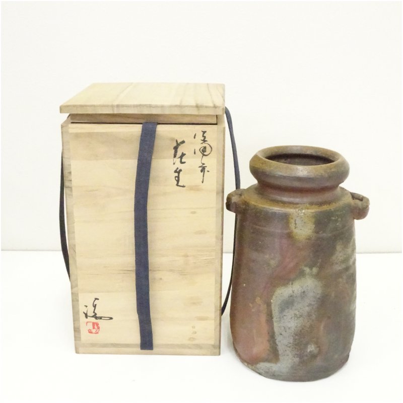 備前焼 伊勢崎満造 花生(共箱)
