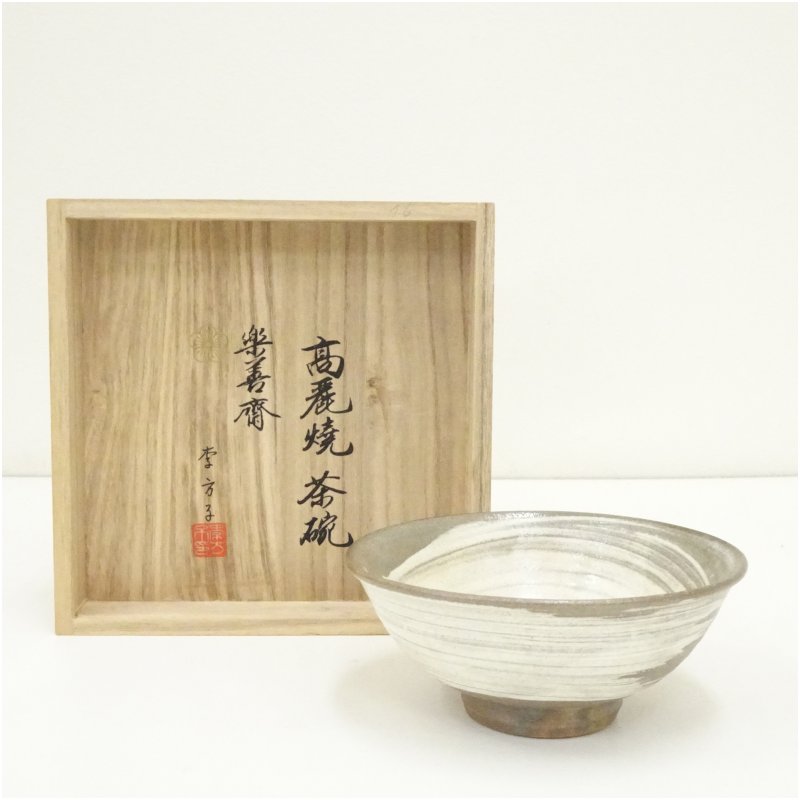 高麗焼 李方子(楽善斎)造 刷毛目茶碗(共箱)