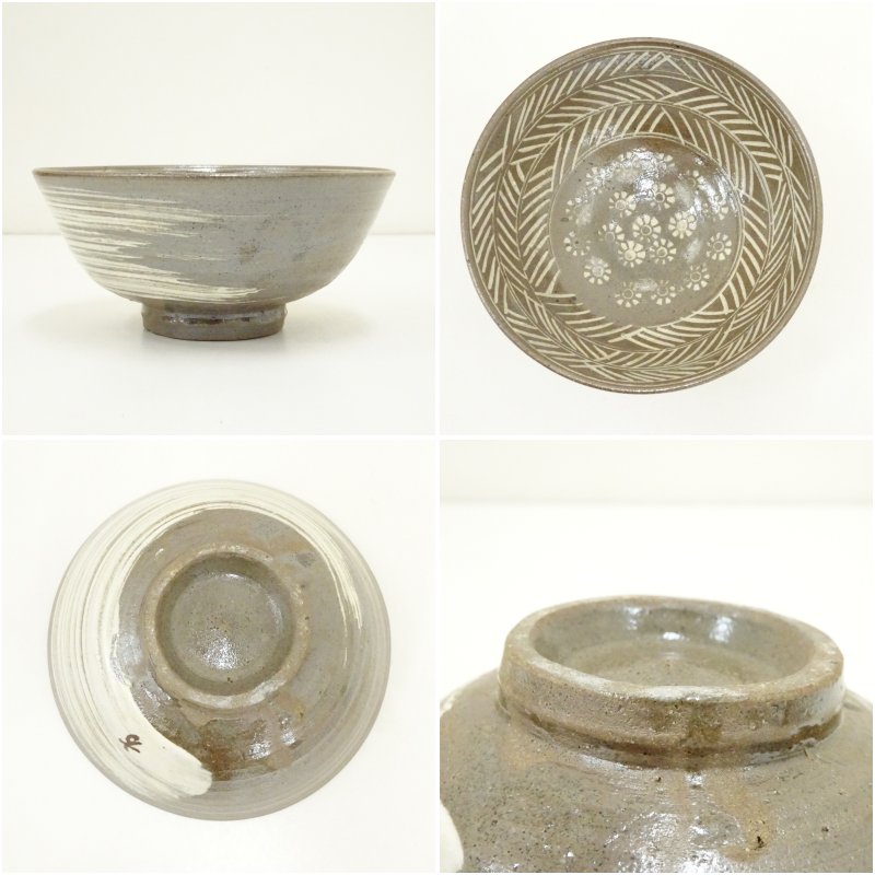 高麗焼 李方子(楽善斎)造 刷毛目三島茶碗(共箱) [13-250903c-014a]