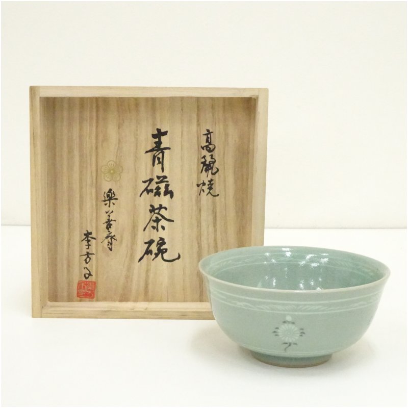 高麗焼 李方子(楽善斎)造 青磁茶碗(共箱)
