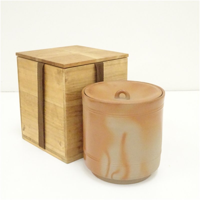 備前焼 木村陶峰造 火襷水指(保護箱) [13-250903c-035a]