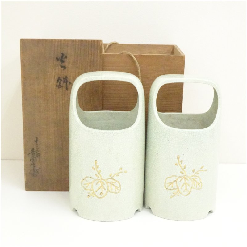 吉向焼 吉向十三軒造 貫入釉桐紋手焙火鉢一双(共箱)