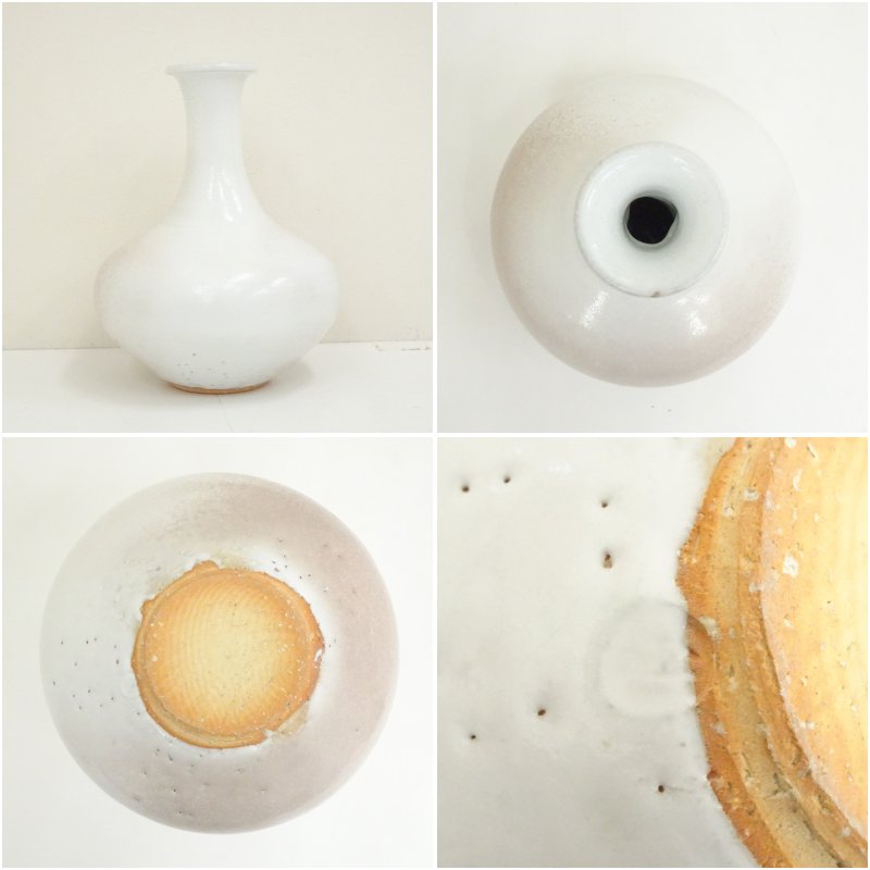萩焼 坂田慶造造 萩白釉下蕪花入(共箱) [13-250903c-046a]