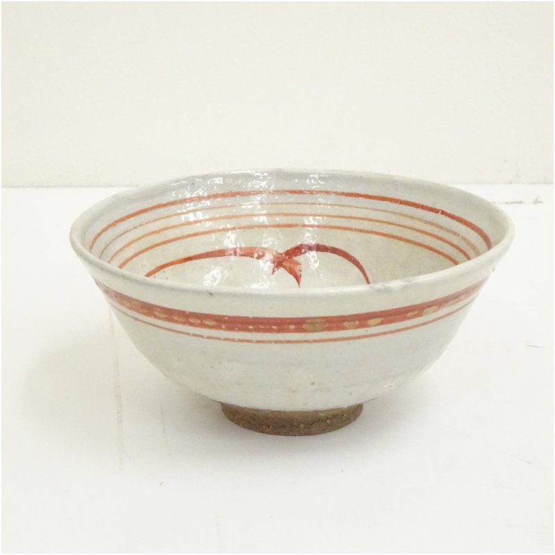九谷焼 中村梅山造 赤絵茶碗(共箱) [13-250903c-047a]
