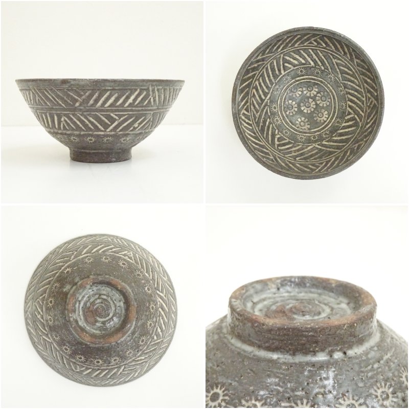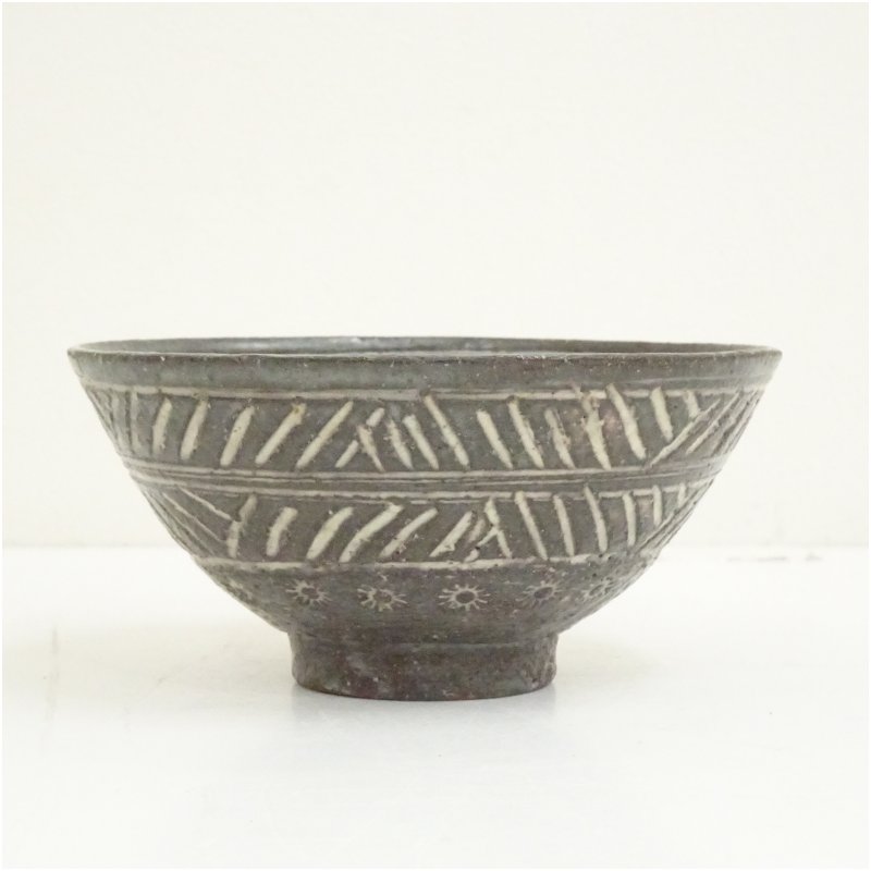 京焼 如拙庵 須田祥豊造 彫三島茶碗(共箱) [13-250903c-048a]