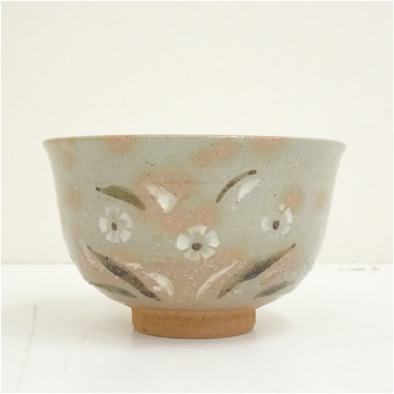 清水焼 坂田和章造 荒土小花文茶碗(箱付) [13-250903c-051a]