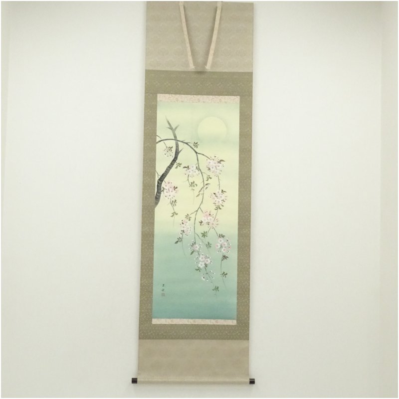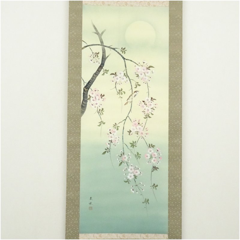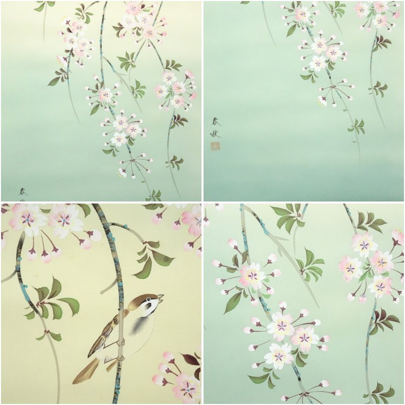 春秋筆 桜に小禽 肉筆絹本掛軸 [01-250903c-070a]