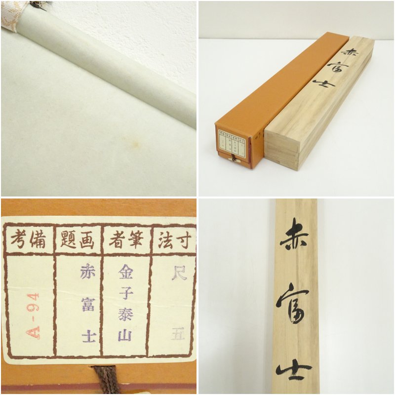 金子泰山筆 赤富士 肉筆絹本掛軸(共箱) [01-250903c-073a]
