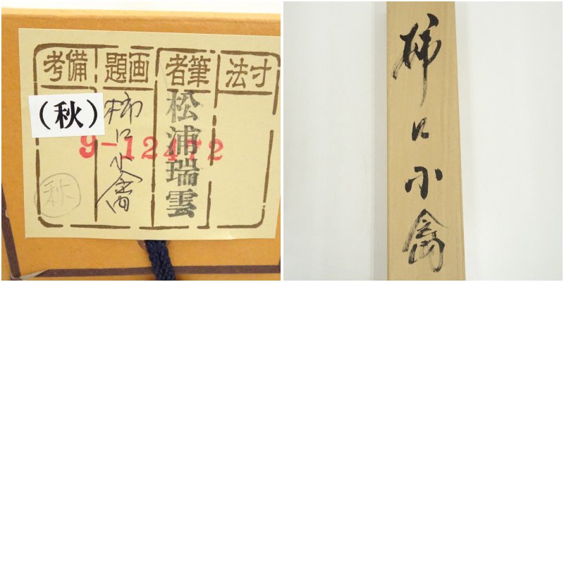 松浦瑞雲筆 柿に小禽 肉筆絹本掛軸(共箱)
