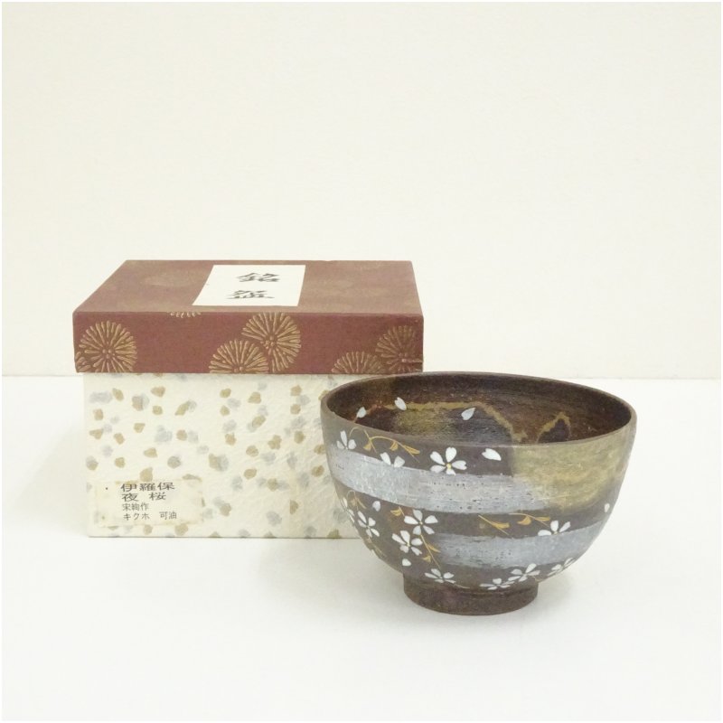 水出宋絢造 伊羅保 夜桜茶碗(箱付)