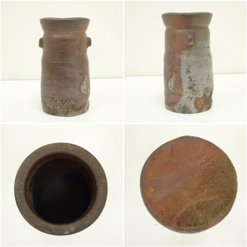 備前焼 的野求造 花入(共箱) [13-250905c-009a]
