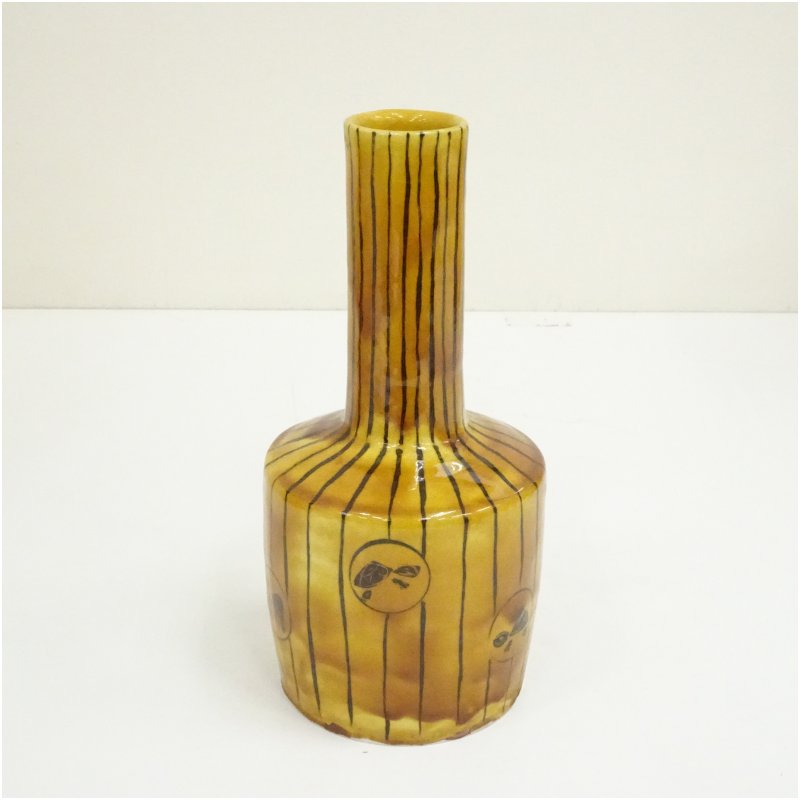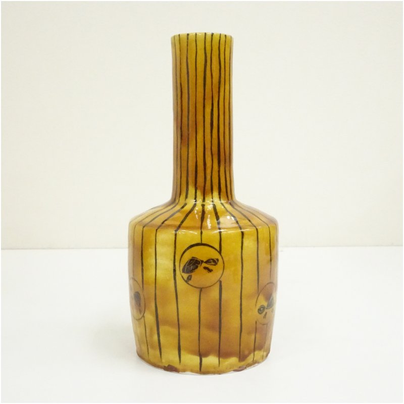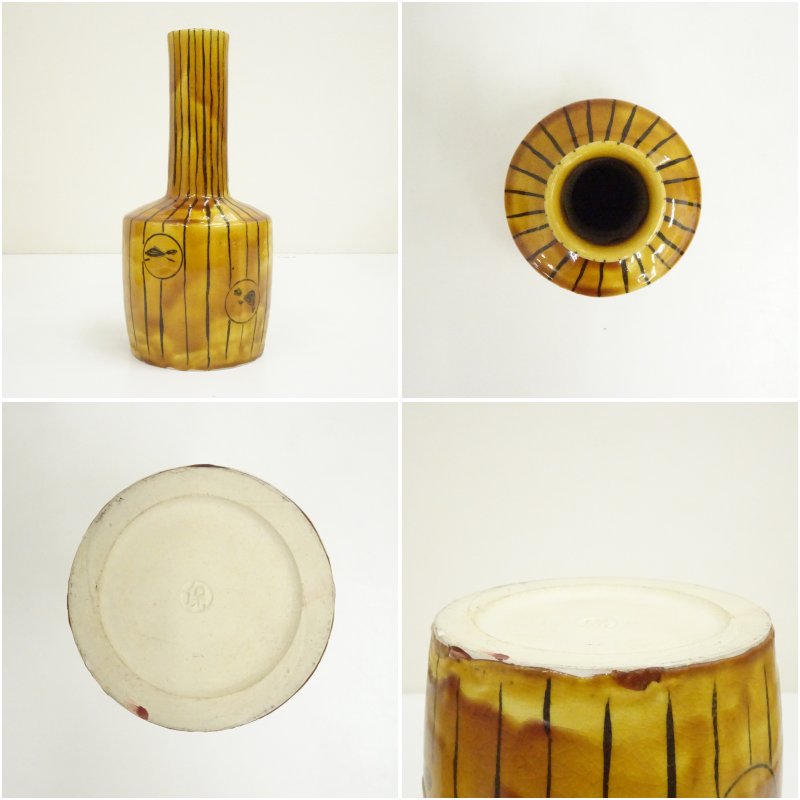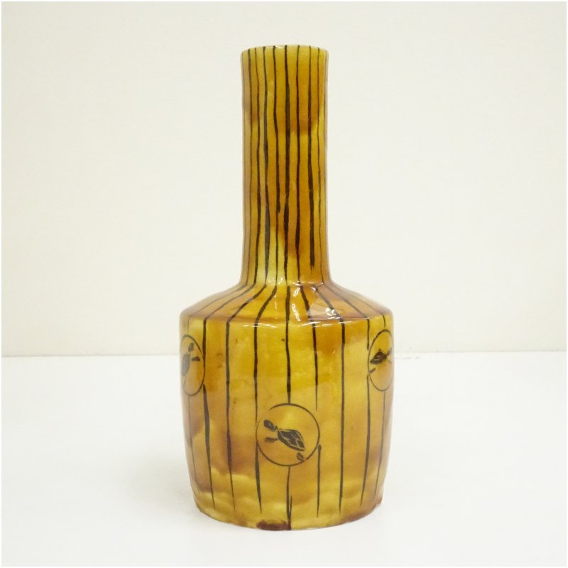 保造 亀文黄釉花瓶(共箱) [13-250905c-016a]