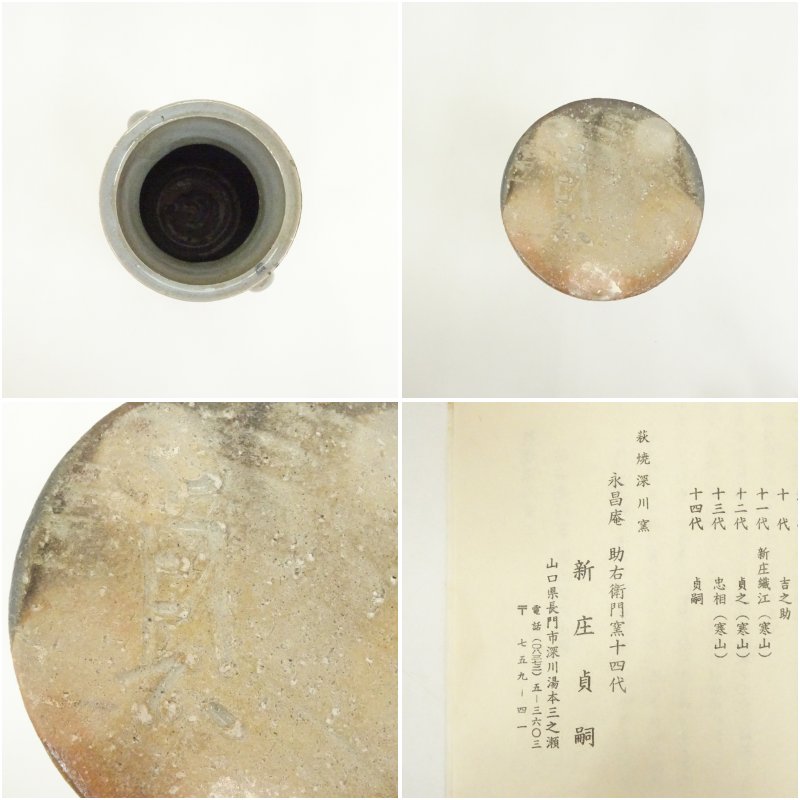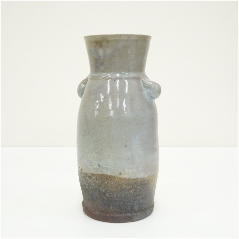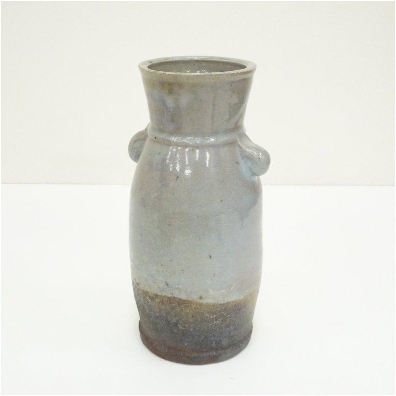 萩焼 新庄貞嗣造 灰被耳付花入(共箱)