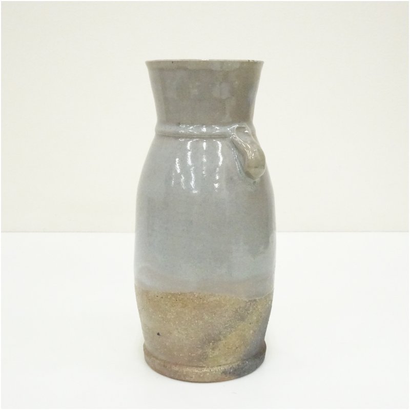 萩焼 新庄貞嗣造 灰被耳付花入(共箱) [13-250905c-025a]
