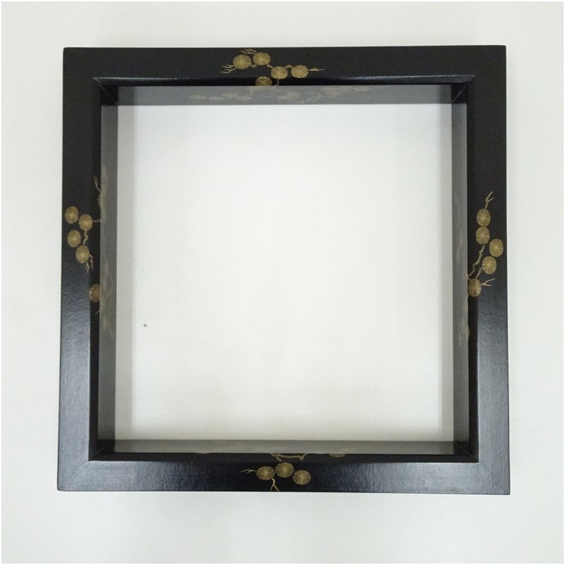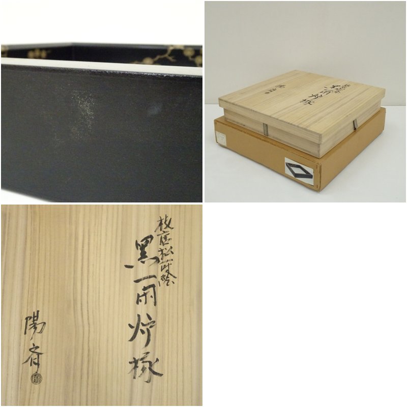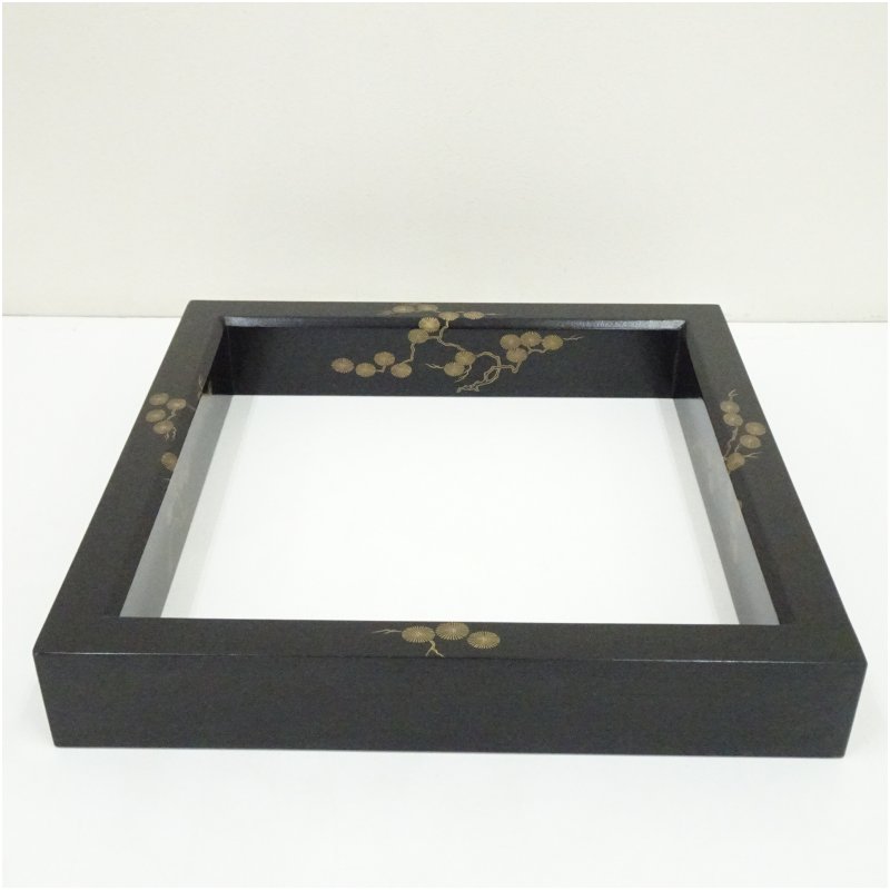 塗師 岡本陽斎造 枝唐松蒔絵黒一閑炉縁(共箱)