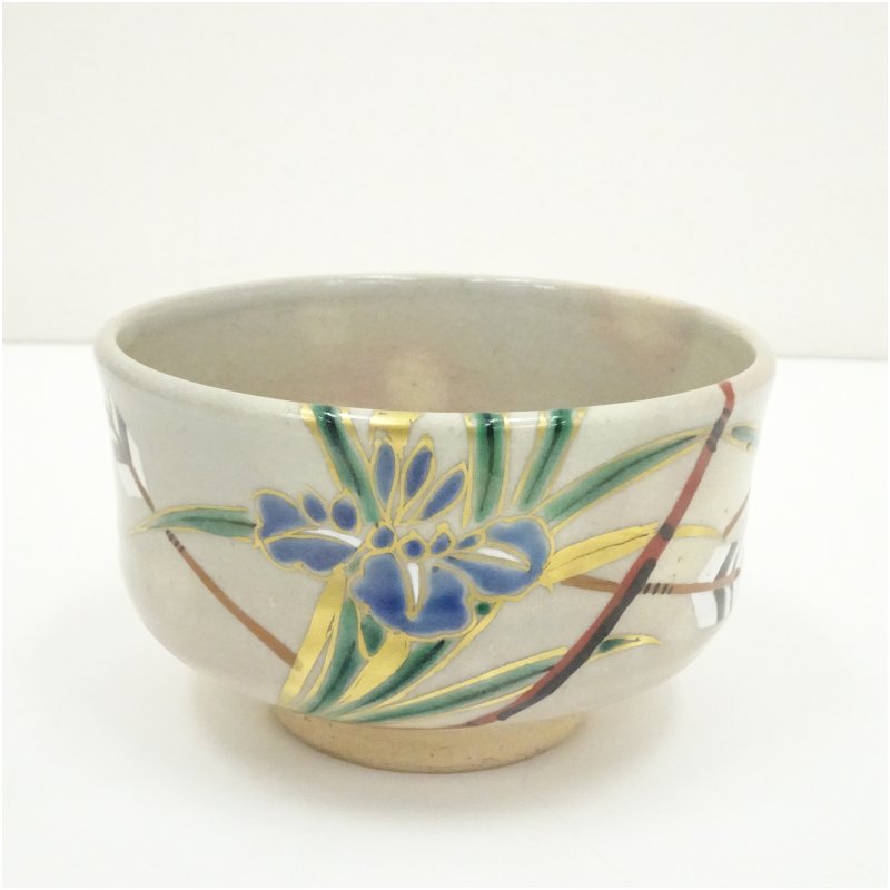 京焼 橋本紫雲造 乾山写花菖蒲文茶碗(共箱) [13-250905c-074a]