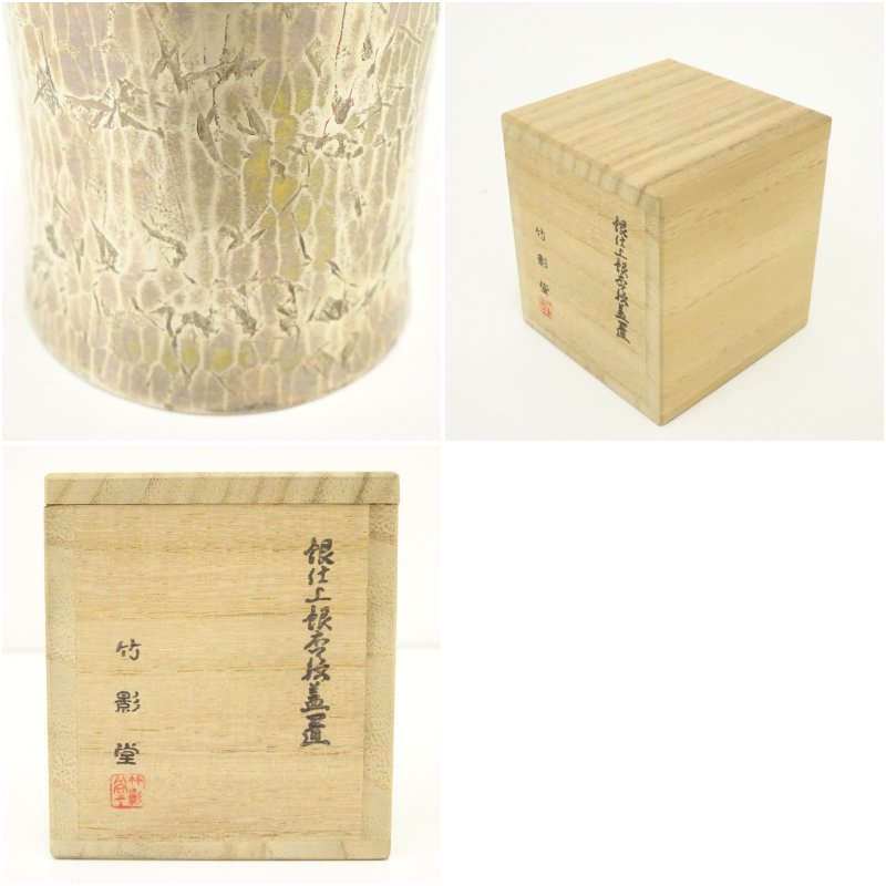 竹影堂造 銀仕上銀杏紋蓋置(共箱)