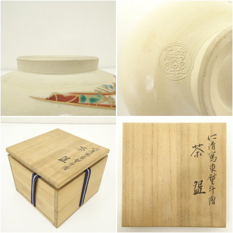 京焼 森里陶楽造 仁清写束熨斗絵茶碗(共箱)
