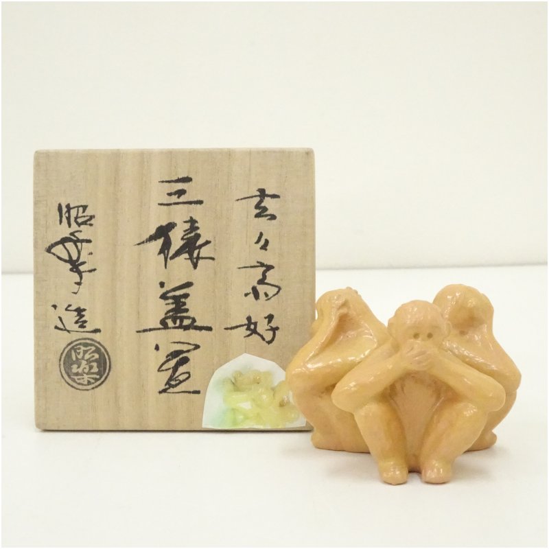 佐々木昭楽造 玄々斎好三猿蓋置(共箱)