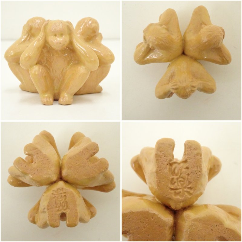 佐々木昭楽造 玄々斎好三猿蓋置(共箱) [13-250908c-027a]